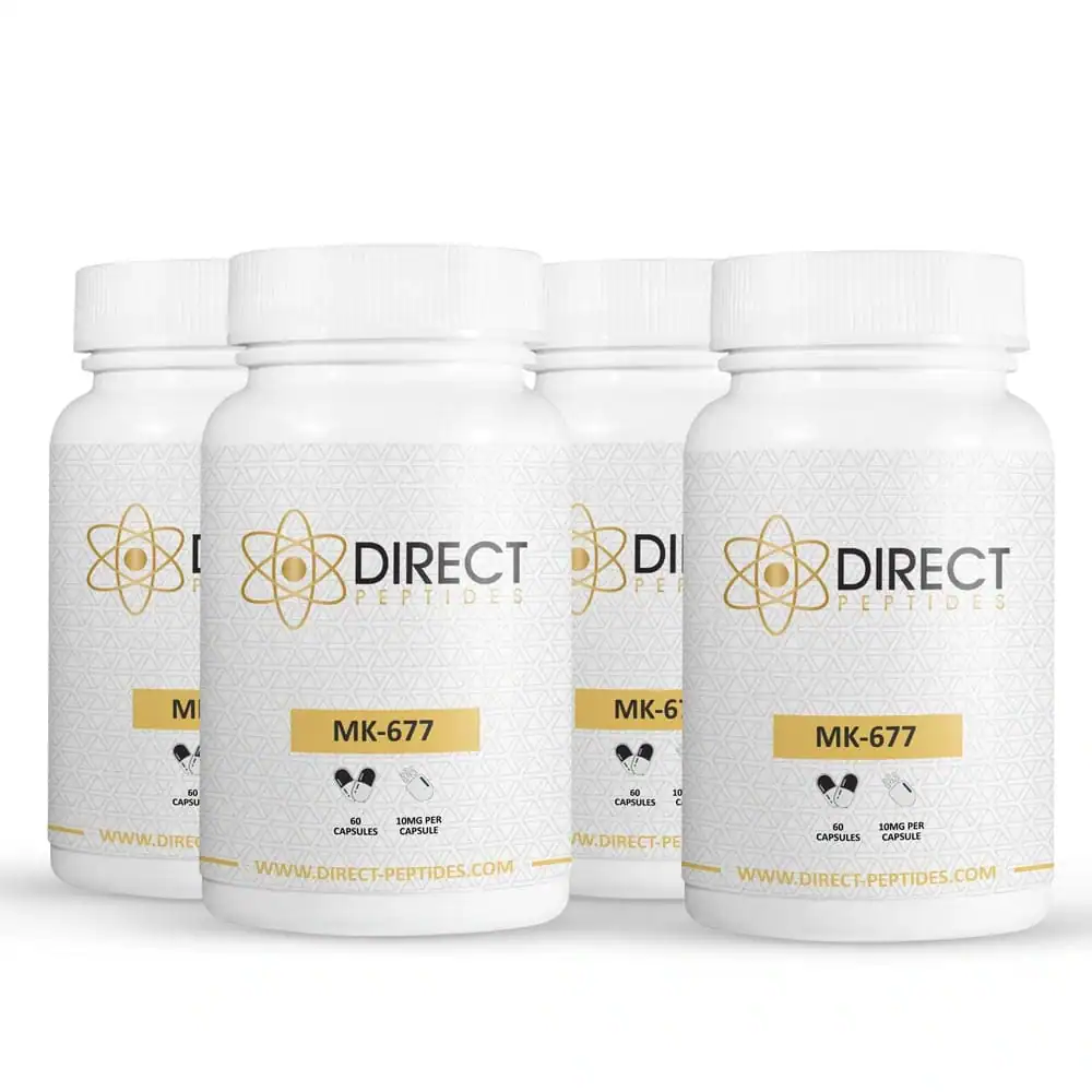 MK-677, or Ibutamoren, is a non-peptide growth hormone secretagogue that acts like ghrelin, a hormone that increases hunger and growth hormone levels. Unlike injectable GHRPs, MK-677 can be taken orally, offering a convenient option. It boosts HGH and IGF-1 secretion, supporting muscle growth, recovery, and body composition. Research also suggests it may improve sleep, bone health, and cognitive function.